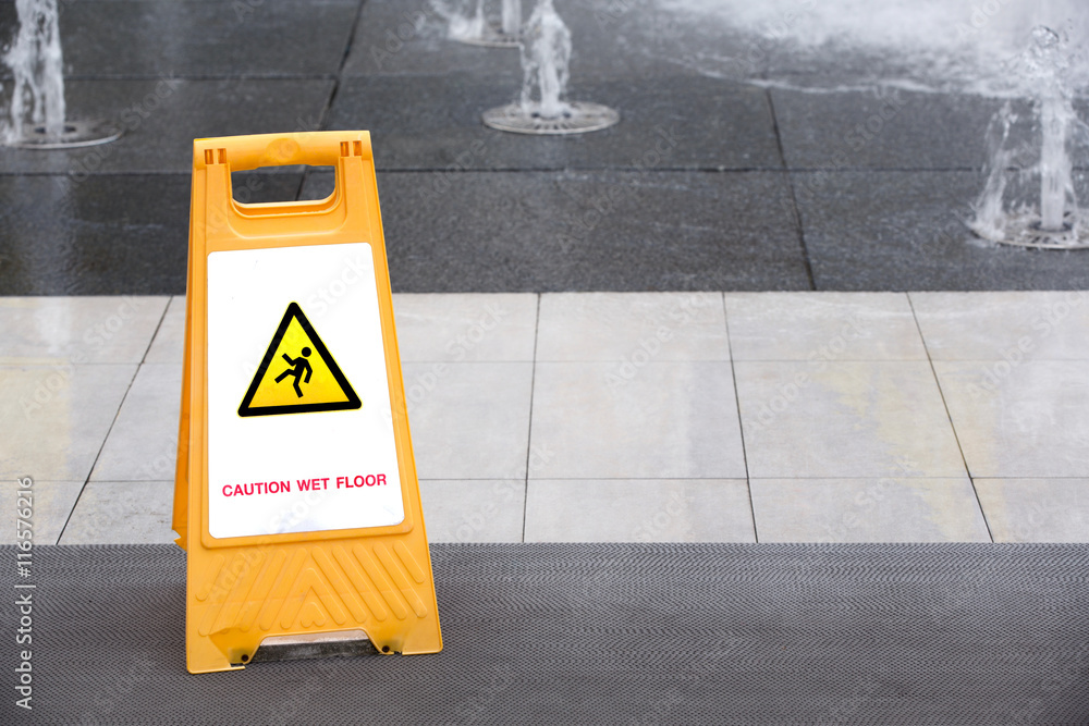 Sign showing warning of caution wet floor