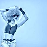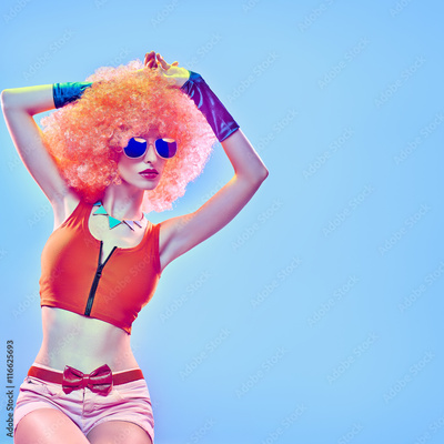 Fashion portrait Hipster Model woman, Stylish hairstyle. Fashion Makeup. Sexy Model, Trendy Glamour fashion Sunglasses. Playful cheeky fashion girl. Unusual Creative.Party disco afro hairstyle