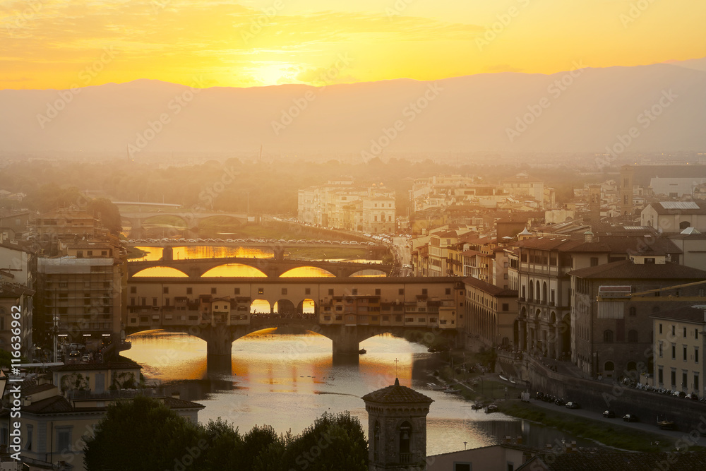 Evening over the Florence. Arno river and famous Ponte Vecchio e