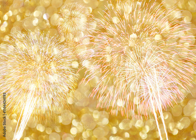 Bright Golden Fireworks Display Sparkling Against Shimmering Background with Light Bokeh Effect for Celebrations and Festive Occasions