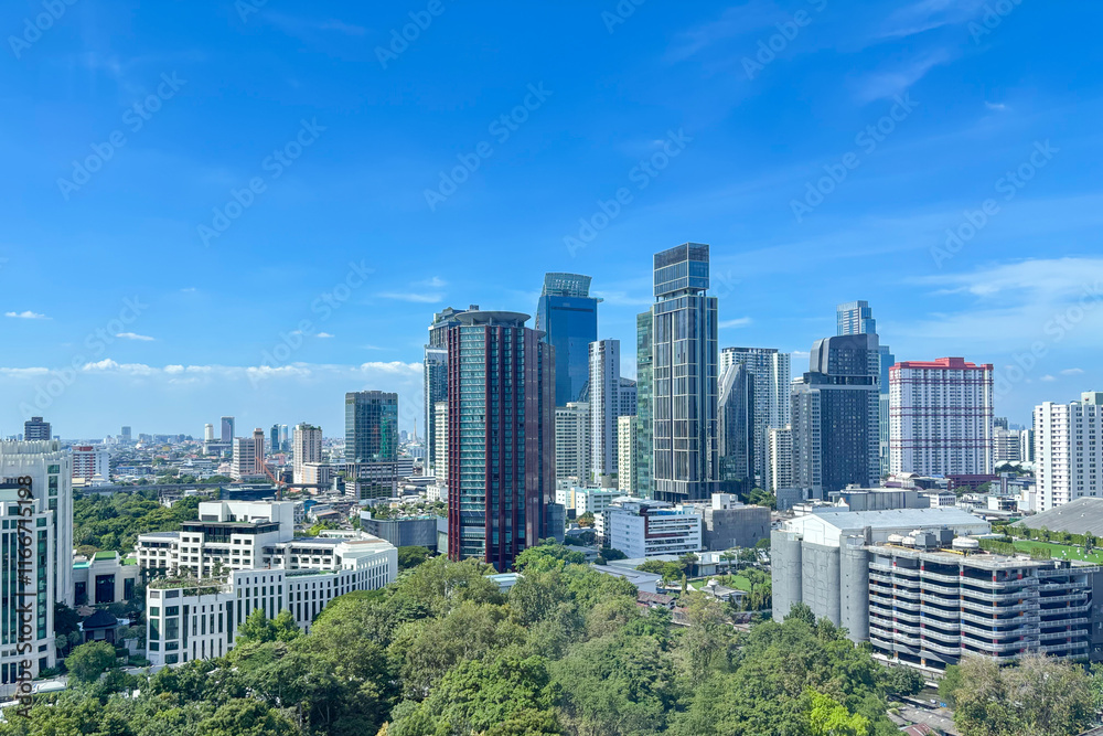 Aerial view of skyline Bangkok city, Thailand with blue sky