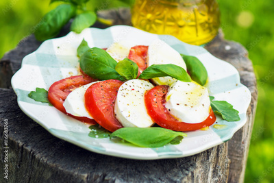 Classic Caprese Salad with Mozzarella Cheese, Tomatoes and Basil