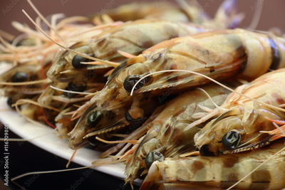 closeup of a tasty dish of fresh prawns from Sanlucar de Barrameda, Andalusia, Spain