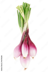 Fresh red onions bunch, Tropea type on white, clipping path