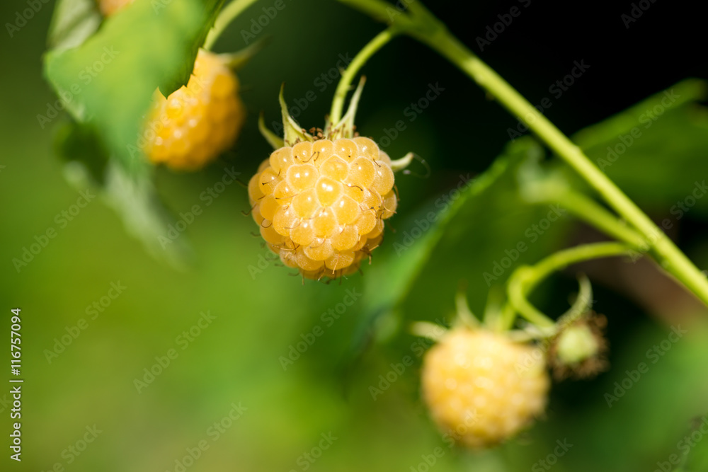 Branch of raspberries in a garden