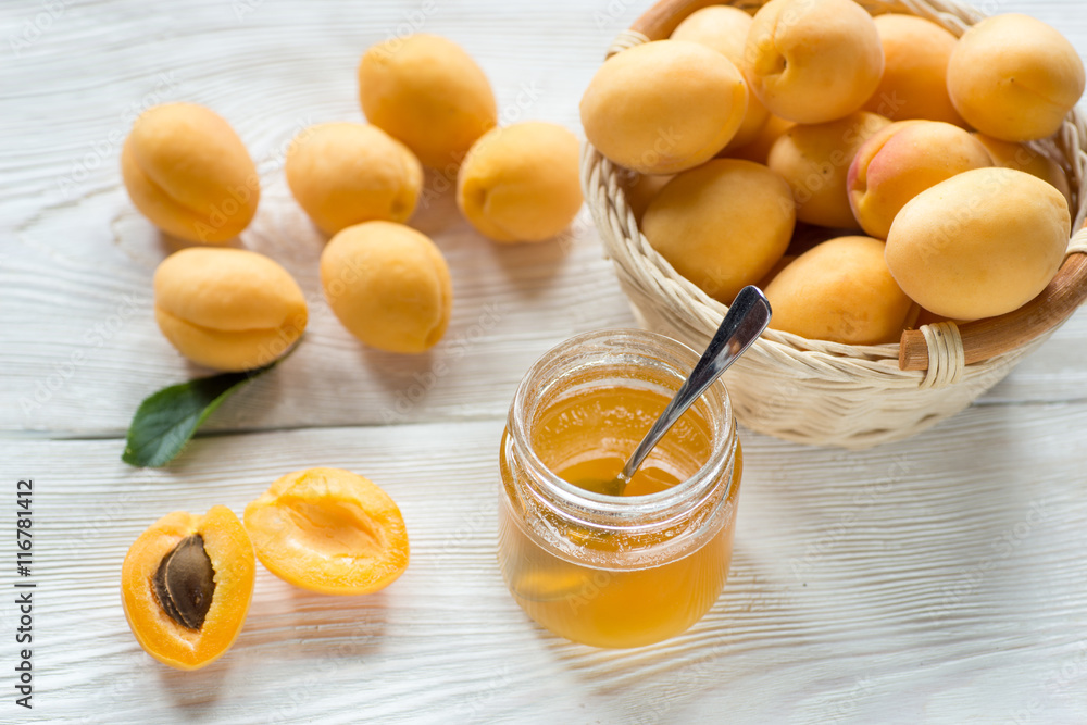 Jar of Honey and Apricot fruits