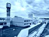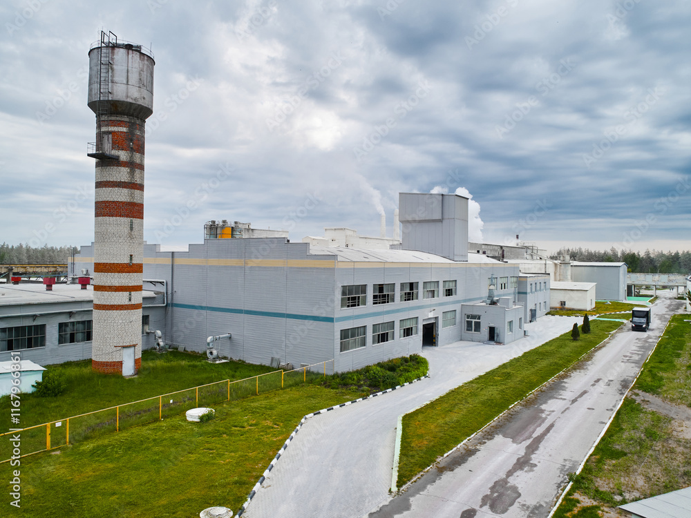 Gas silicate blocks manufacturing workshop under cloudy sky