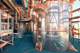 Inside a modern chemical plant with intricate pipelines and processing equipment during the day