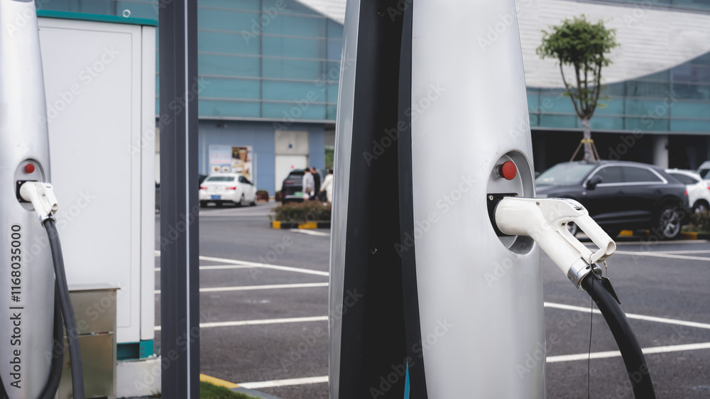 Modern Electric Vehicle Charging Stations in Urban Setting