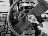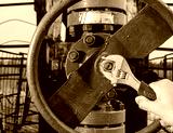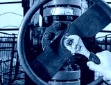 Wellhead valve repair with the wrench. Oil and gas concept.