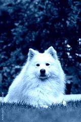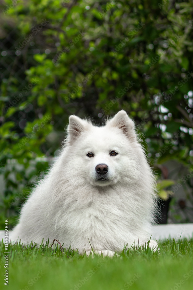 beautiful samoyed dog in the grass