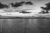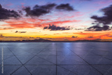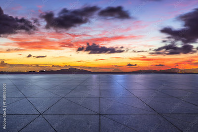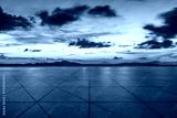 Empty square floor and coastline with beautiful sky clouds nature landscape at night. Outdoor natural background.