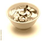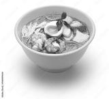 A creamy spicy soup made with a coconut milk base. Common ingredients include shrimp, tofu, boiled eggs, and laksa leaf.