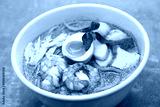 Laksa lemak is a noodle dish from Malaysia and Singapore. A creamy spicy soup made with a coconut milk base. Common ingredients include shrimp, tofu, boiled eggs, and laksa leaf.