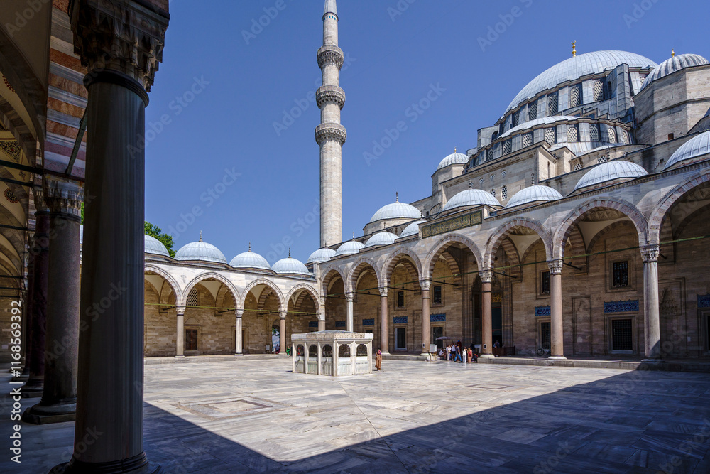 Turkiye. Istanbul. The imposing Suleymaniye Mosque or Suleiman Mosque and its inner courtyard