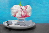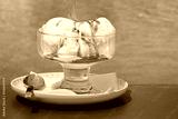 Misted Glass Bowl With Ice Cream Sundae Balls And Syrup