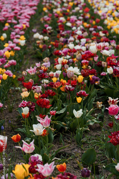 Vibrant Tulip Field in Full Bloom with Diverse Colors and Varieties