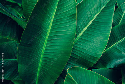tropical banana leaf texture in garden, abstract green leaf, large palm foliage nature dark green background.