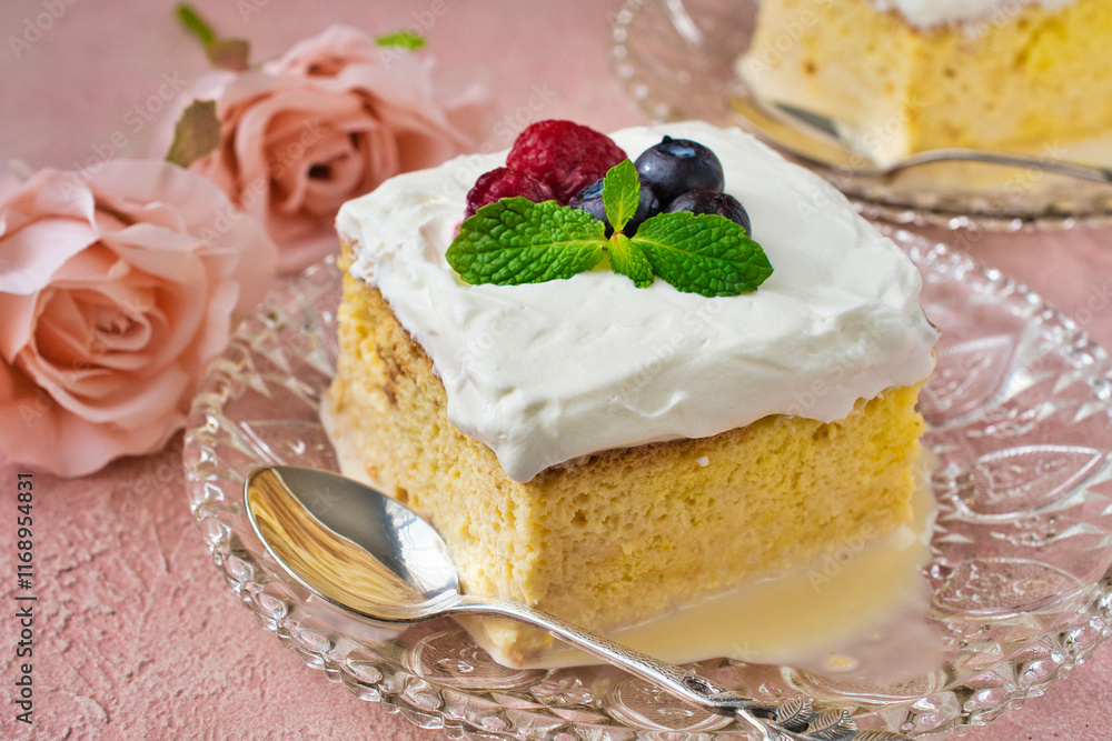 メキシコのスイーツ パステル・デ・トレス・レチェス(3種のミルクのケーキ) Mexican sweets Pastel de Tres Leches( Mexican Tres Leches Cake,Tres Leches Cake,Three Milk Cake, 3 Milk Cake)
