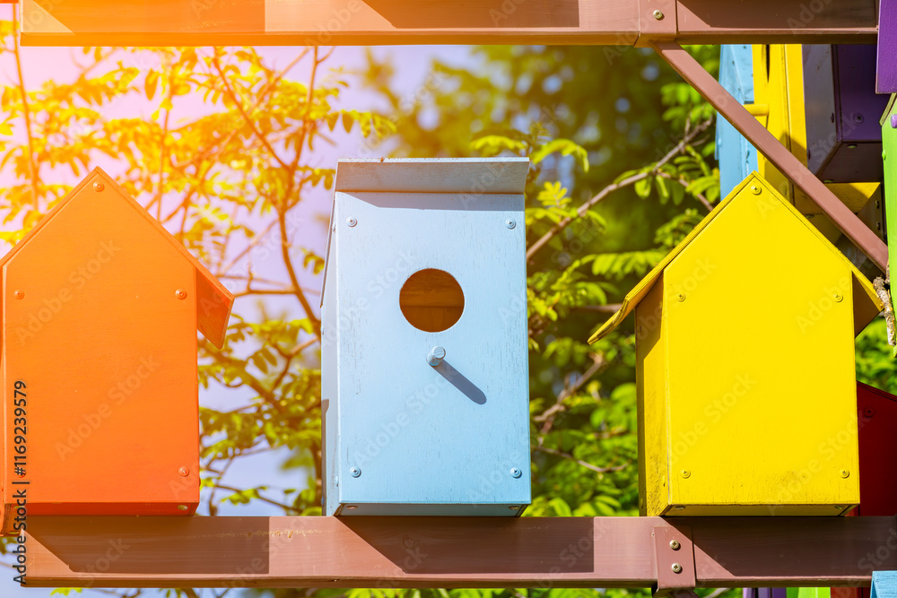 colorful birdhouses for birds. concept of protecting and preserving the environment