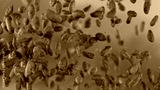 Freeze Motion Shot of Flying Raw Cocoa Beans After Being Exploded
