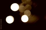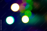 Colorful lights of Christmas garlands. Defocused light circles on a dark background. Blurred garlands