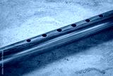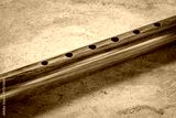 native American style flute handcrafted from aromatic cedar wood against art paper
