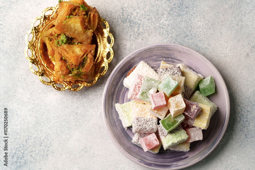 Sweets served on elegant plates display traditional desserts at a festive gathering