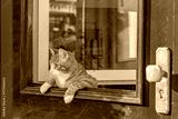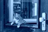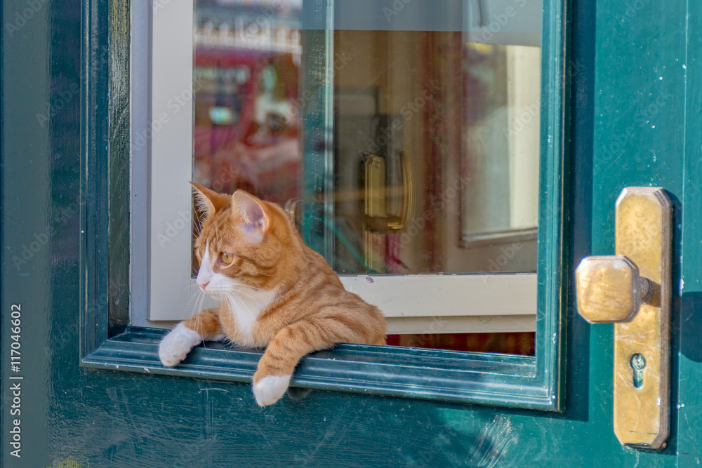ドアから覗く猫
