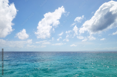 Peaceful seascape with turquoise water and sunny sky.
