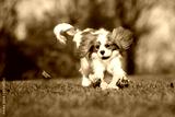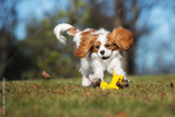 happy dog playing with a toy outdoors