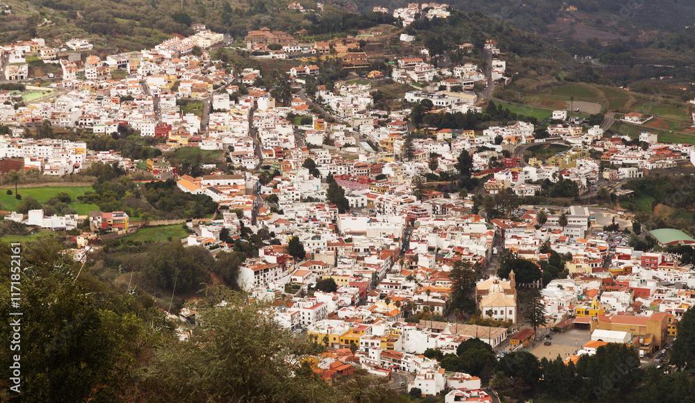 Gran Canaria, view towards Teror town from a path to Las Cumbres, The Summits