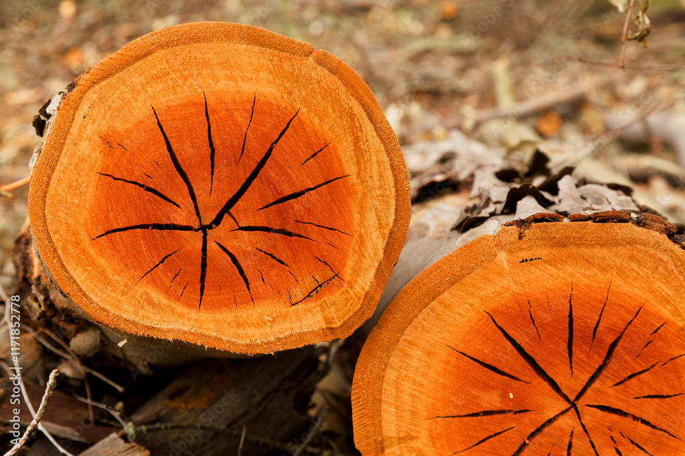 Flora of Gran Canaria - Eucalyptus camaldulensis, introduced species, freshly cut trunks, orange