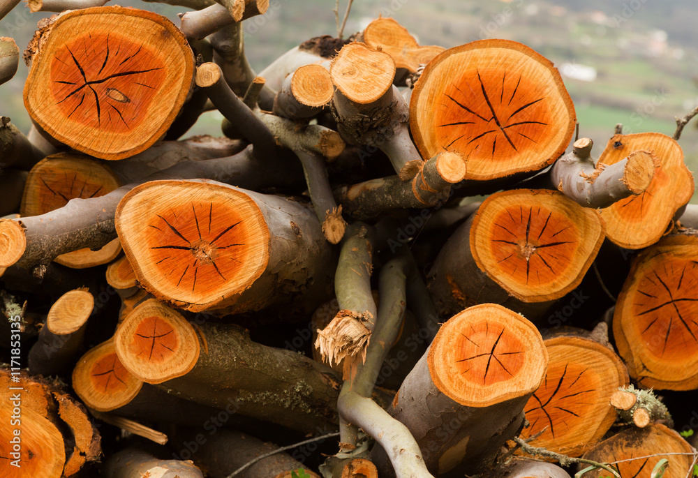 Flora of Gran Canaria - Eucalyptus camaldulensis, introduced species, freshly cut trunks, orange