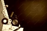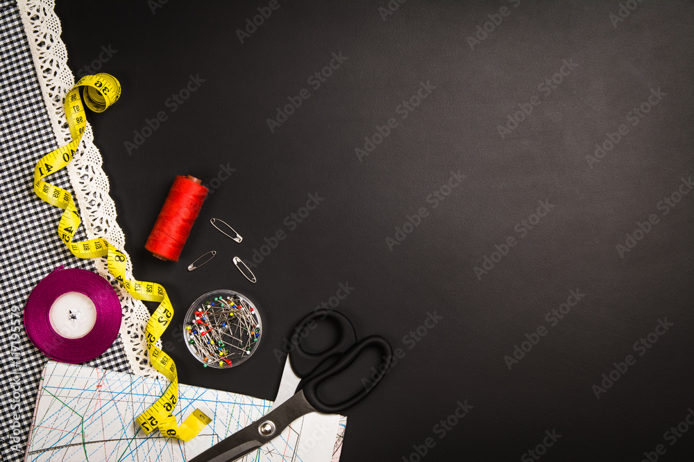 Background with sewing and knitting tools and accesories
