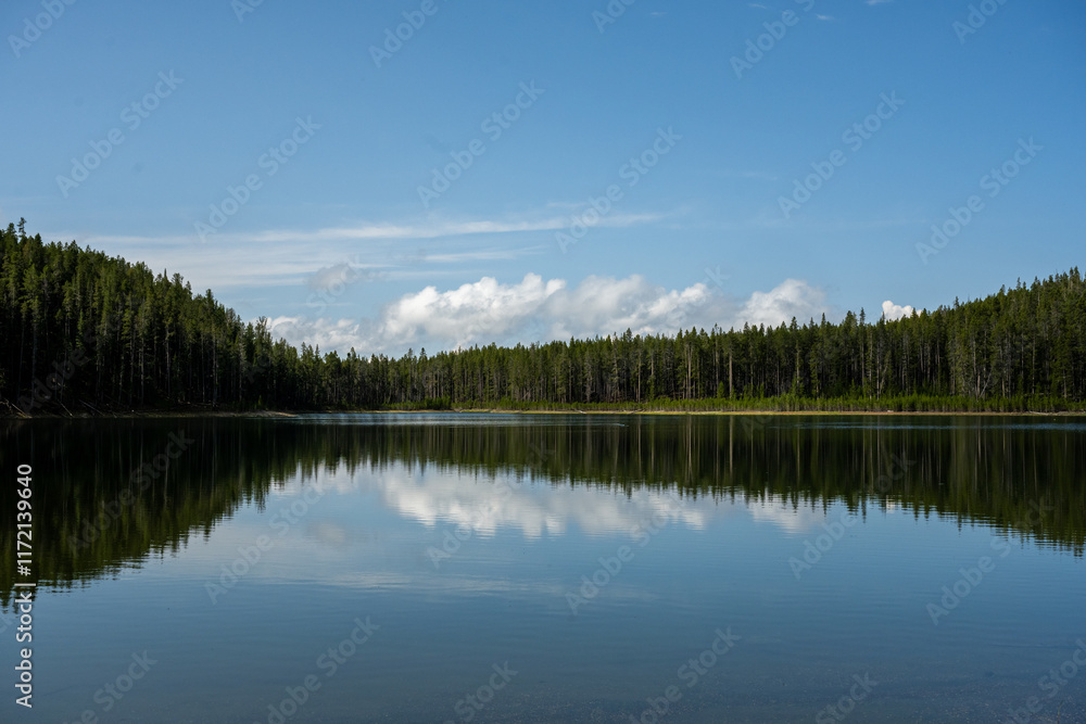 Calm Waters of Mary Lake Reflect Clouds and Sky