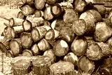 Preparation of firewood for the stove. Big pile of firewood