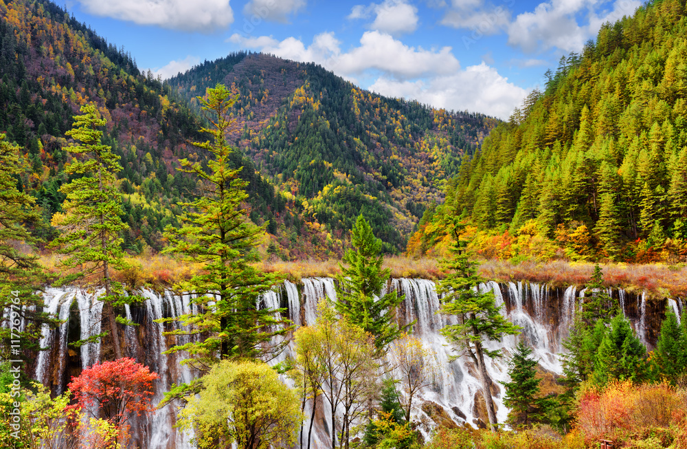 The Nuo Ri Lang Waterfall (Nuorilang) among woods and mountains