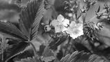 small white strawberry flower, close-up. forest strawberry flowers in green grass. Flowers with white petals and green leaves, macro photo. spring season. wild berries.
