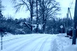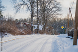 Cold snow covered city road in small cute town of Ikskile in Latvia. Cold winter conditions icy road