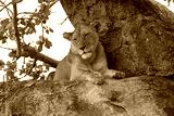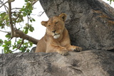 portrait of a female lion lioness laying on a stone in the serengeti national park tanzania