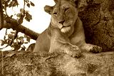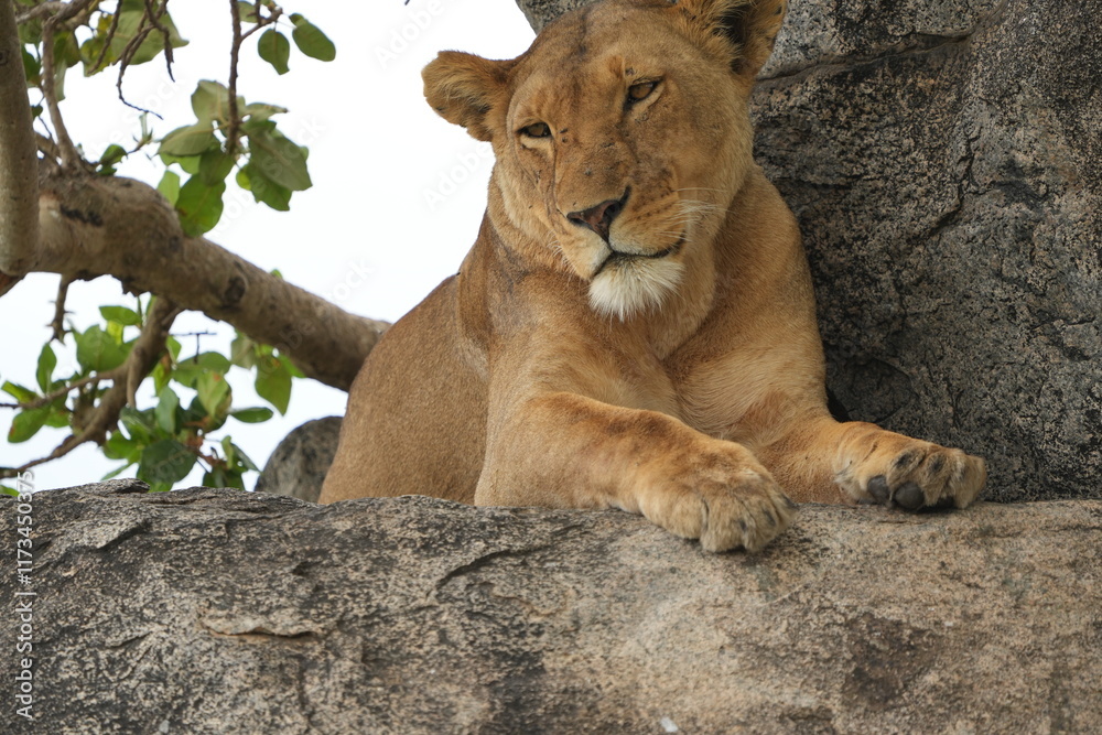 portrait of a female lion lioness laying on a stone in the serengeti national park tanzania