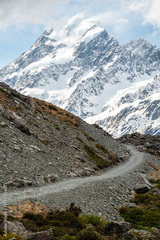 The beautiful landscape of Hooker valley in Aoraki Mount Cook the highest mountains in New Zealand.
