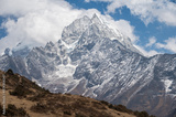 Beautiful view of Mt.Thamserku (6723m) seen from the area nearby Namche Bazaar, Nepal. Thamserku lies in Mahalangur sub-range connecting east leading ridge to Mt.Kangtega.