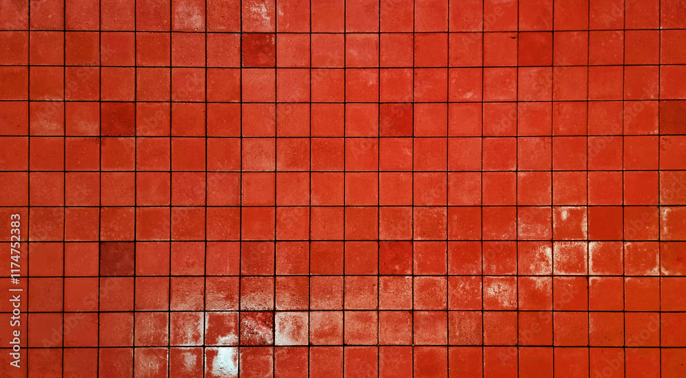 rustic red tile mosaic with a grid pattern used as a background. perfect for modern backgrounds and interior design. red semi gloss brick tile background.