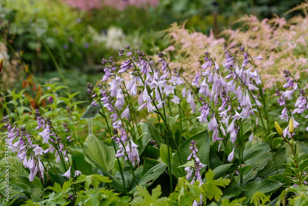 The hosta blooms in the garden. Hosta inflorescences on a natural background