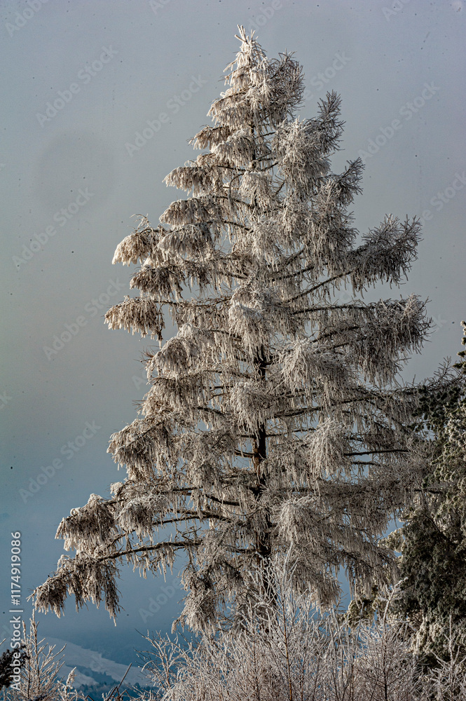 Szron, polskie góry, Beskid Sądecki, Małopolska, Muszyna.