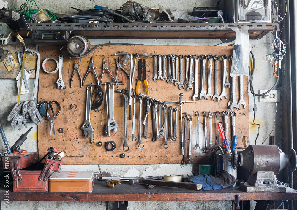 Tool shelf against a wall