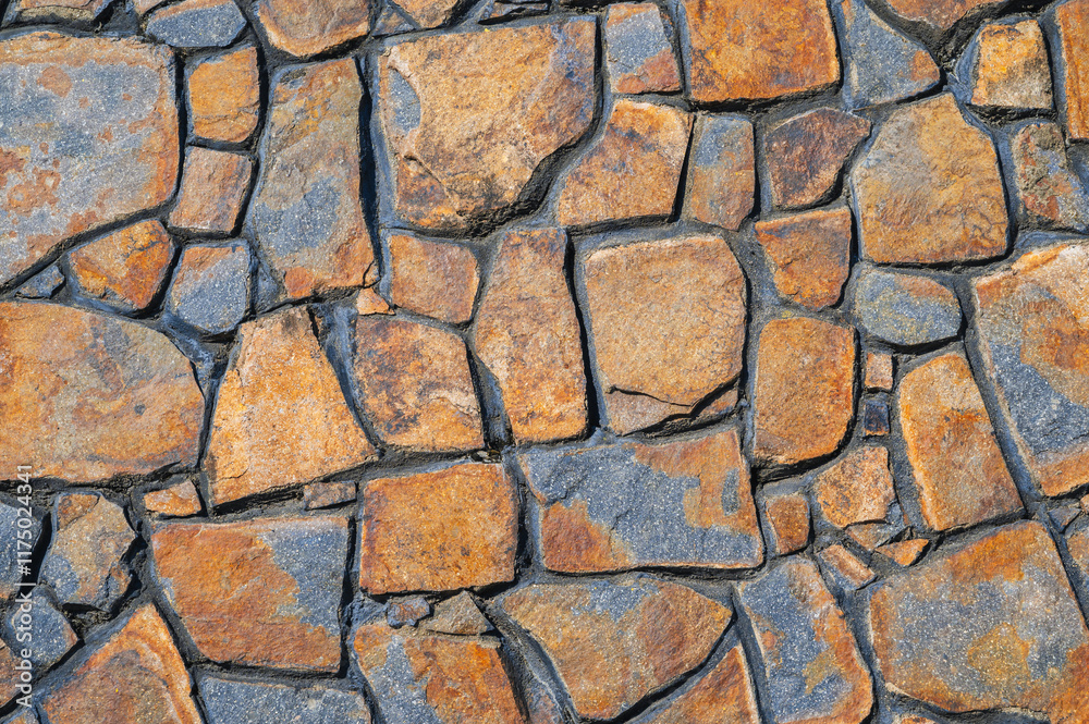 The texture of the walls is made of brown-gray stone, the background of the floor. Wide panoramic stone pattern. The surface of natural masonry.