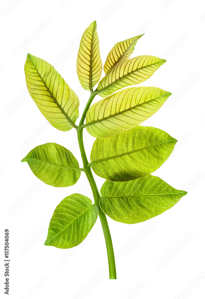 leaves of walnut isolated on white background
